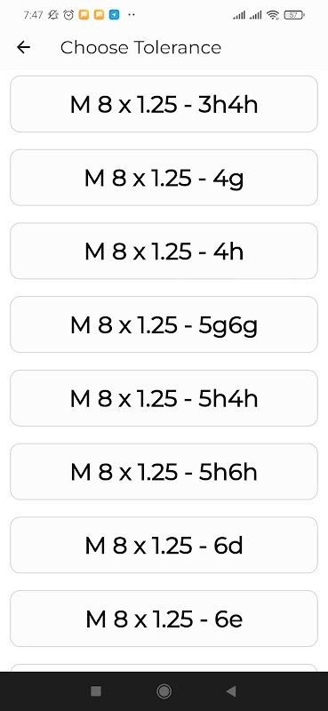 Aplikasi ini sekarang mendukung Toleransi Benang Metrik, Inci Terpadu, Pipa, dan Trapesium ISO, memberikan wawasan terperinci tentang parameter dasar benang silinder metrik, inci, pipa, dan trapesium. Dibangun berdasarkan standar ISO 965, standar ASME/ANSI B1.1, ISO 228, ANSI/ASME B1.20.1, ГОСТ 6357-81, dan standar GOST 24737-81.