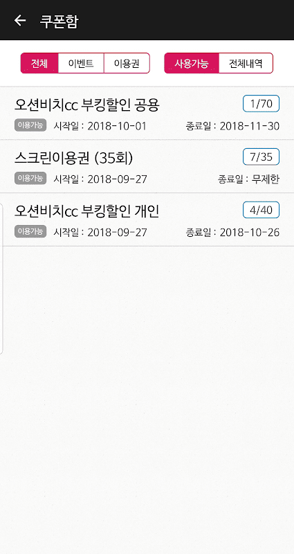 MG엔젤 스크린골프 연습장의 이벤트 / 이용권 쿠폰함을 제공하며,
