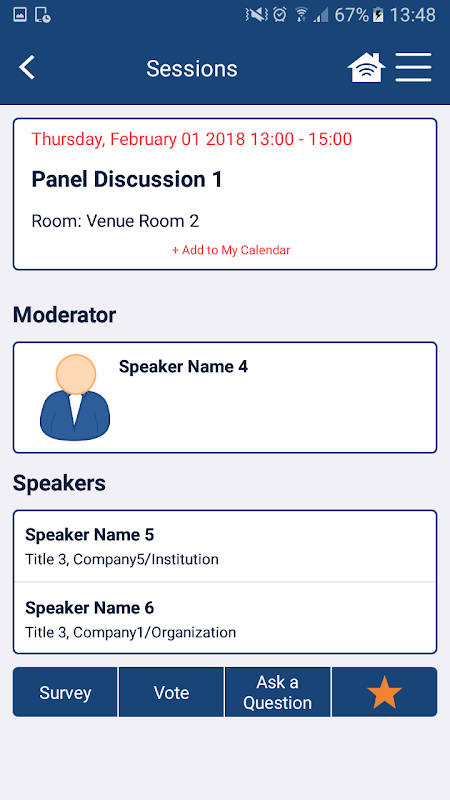 -Dengan Favorit fitur pengguna dapat Sesi bookmark, Speaker, Peserta dan informasi lainnya yang menarik minat dia yang paling