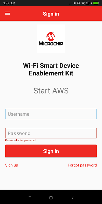 This app is fully functional only with the specific Microchip Wi-Fi Smart Device Enablement Kit
