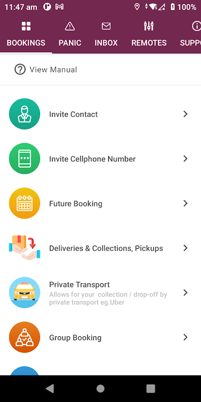 * Tombol panik (beri tahu keamanan dengan lokasi gps Anda)