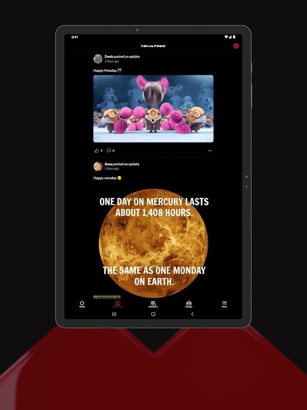 Setiap pengguna dapat membuat profil masing-masing, memposting, menyukai dan mengomentari konten, bertemu orang baru, berjejaring dan terlibat melalui pesan dan panggilan, bergabung/mengobrol dalam grup, dan banyak lagi.