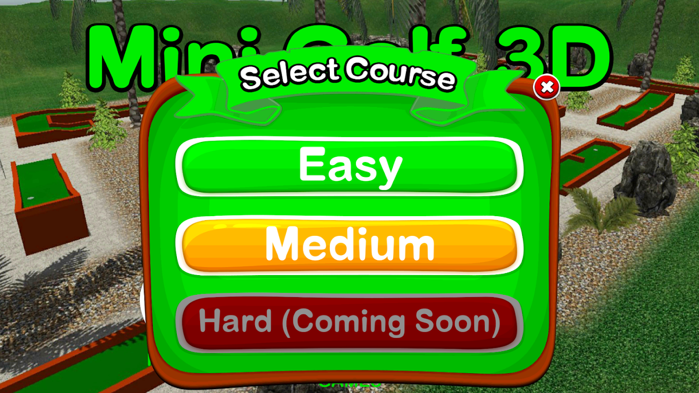 Mini Golf 3D adalah permainan golf mini gratis yang mencakup dua lapangan 18 lubang dengan antarmuka yang mudah digunakan dan grafik 3D yang bagus. Mini Golf 3D menampilkan mode normal, di mana Anda dapat membandingkan skor tinggi Anda dengan orang-orang di seluruh dunia, dan mode latihan baru di mana Anda dapat memilih lubang individu untuk berlatih sebanyak yang Anda inginkan. Sekarang juga ada 3 mode kamera berbeda untuk diputar termasuk tampilan di belakang bola, tampilan udara, dan tampilan lain yang terus berputar di sekitar lubang. Anda dapat masuk ke Layanan Google Play Game untuk bersaing dengan teman di papan pemimpin global dan mendapatkan pencapaian juga. Papan pemimpin memberi peringkat skor terbaik untuk hari ini, minggu, dan sepanjang waktu, serta jumlah total hole-in-one dan ronde yang diselesaikan. Jika Anda menyukai golf mini, Anda akan menyukai permainan golf mini yang menenangkan namun menantang ini. Lihat apakah Anda dapat menetapkan skor tinggi dan menjadi juara golf mini!