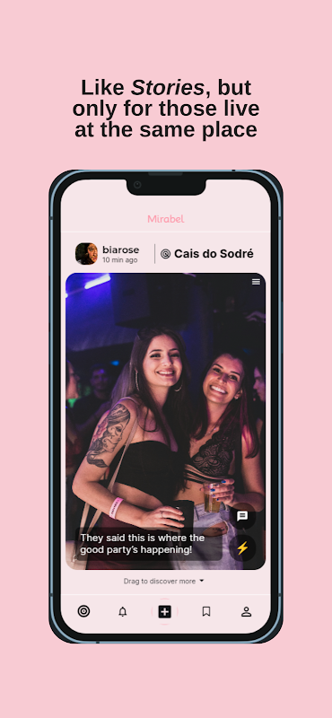 Bagikan "Momen" Anda; postingan foto dan teks dengan lokasi geografis yang bertahan 24 jam dan hanya dapat dilihat oleh orang yang berada di tempat yang sama dengan Anda.