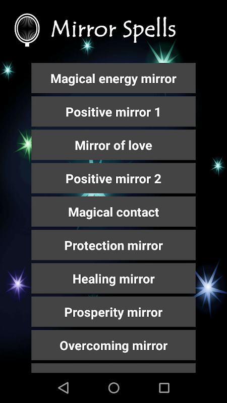 Aplikasi ini termasuk mantra energi positif untuk diri sendiri sehingga penting untuk menggunakan cermin. Untuk dapat mencerminkan citra kita untuk memiliki lebih banyak hubungan spiritual dengan jiwa dan aura kita.