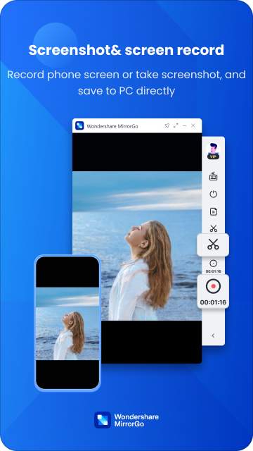 MirrorGo menampilkan layar ponsel Android ke PC Anda dalam 1 klik. Anda juga dapat mengontrol Android Anda menggunakan mouse dan input dari keyboard PC.