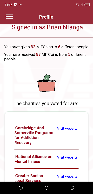 At the end of the semester, all of the MITcoins you've received will be converted to dollars that you donate to the charity of your choice.