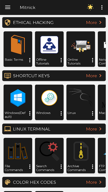 This App provides a huge collection of Ethical Hacking Tools, Tutorials and Computer Shortcut Command Keys and Network Utilities...