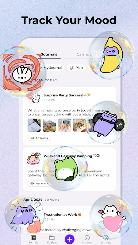 🧸 Stiker suasana hati yang lucu: Lacak emosi Anda dengan mudah dan tambahkan kreativitas ke jurnal Anda dengan stiker suasana hati yang lucu.