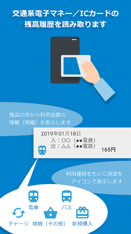 Anda dapat membaca transportasi uang elektronik / kartu IC seperti Suica dan PASMO.