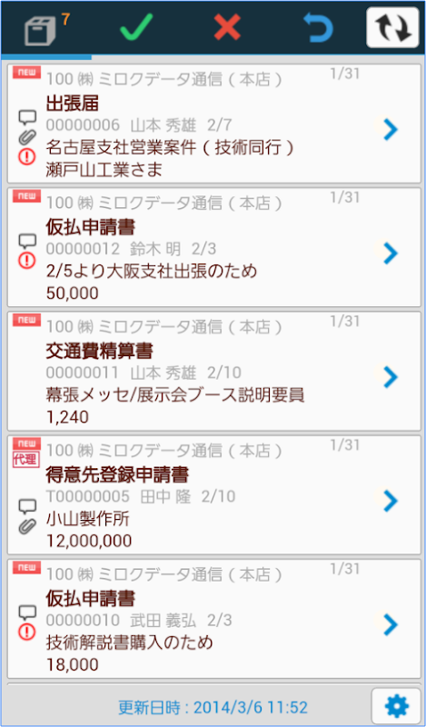 MJS NX-Plus alur kerja "adalah persetujuan dengan operasi sederhana data permintaan persetujuan dari formulir aplikasi dalam produk alur kerja dari MJS pada perangkat pintar (persetujuan, penolakan, Samodo) adalah mungkin aplikasi. Dengan mengacu pada persetujuan permintaan data yang telah datang kepada Anda, persetujuan, penolakan, Anda dapat membuat persetujuan Samodo. Keputusan pada saat persetujuan, juga Anda dapat lihat diberikan komentar dan lampiran untuk data permintaan persetujuan.