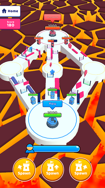 Gunakan mana Anda untuk mengerahkan pasukan dari salah satu dari 3 menara Anda secara strategis. setelah bar menara penuh, itu akan menelurkan pahlawan Anda.