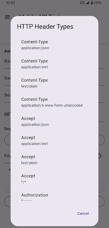 - Menambahkan dialog pemilihan jenis header HTTP.
