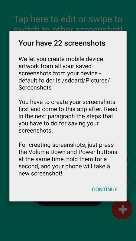 * We let you to create mobile device artworks from all your saved screenshots from your device - the default folder where the screenshots are located is /sdcard/Pictures/Screenshots