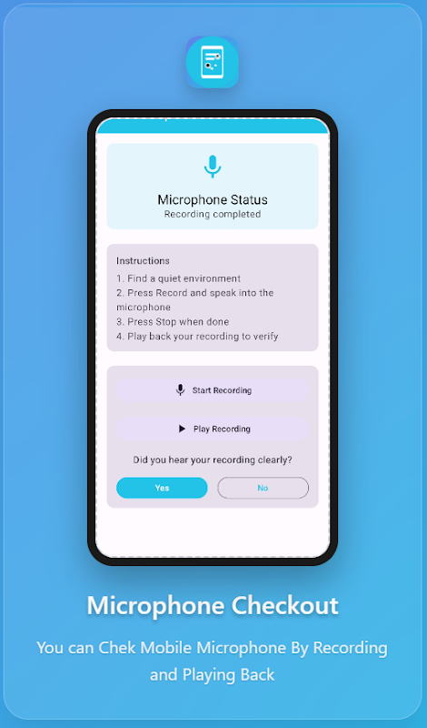 Pengujian Mikrofon: Rekam dan putar ulang suara Anda untuk memverifikasi kejelasan.