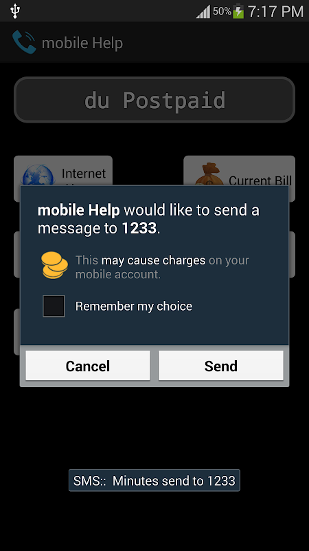 it will send sms to 1233(du toll-free number) to check the balance and bill details.