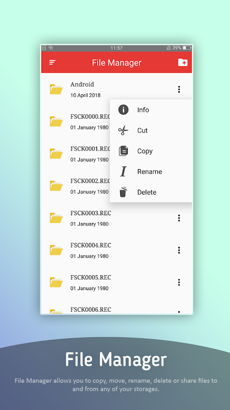 - File manager is a specially phone file management designed software. The app