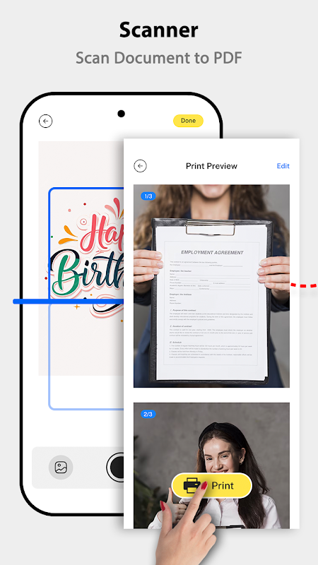 Cetak dokumen, foto, PDF, dan lainnya dari ponsel Anda menggunakan printer WiFi yang didukung. Nikmati pencetakan nirkabel yang cepat dan aman tanpa kabel atau komputer.