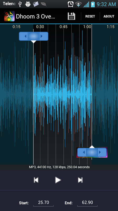 Manually set the Start & End time(in seconds) by typing the values in text boxes at bottom of app.