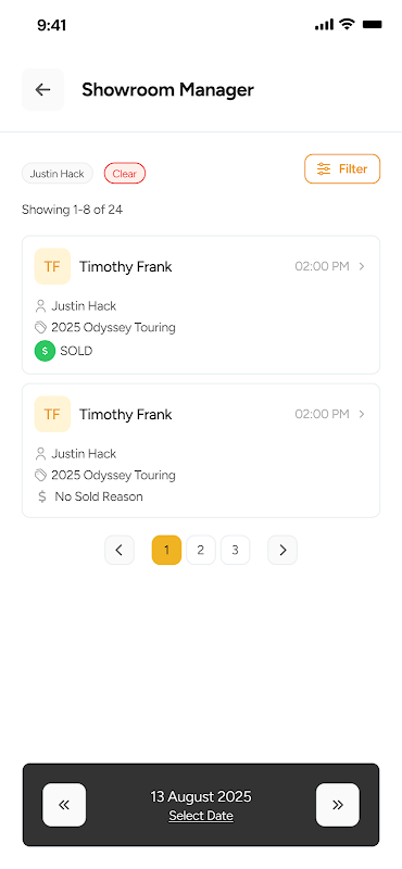 * Pelacakan aktivitas showroom