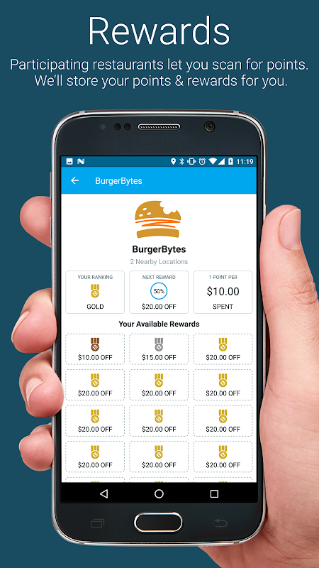 MobileBytes memungkinkan Anda untuk memindai kode pada penerimaan tamu Anda untuk mendapatkan poin loyalitas. Semua poin Anda dikelola dalam aplikasi dan secara otomatis dikonversi ke imbalan ketika tingkat pengeluaran yang dicapai. Semakin banyak poin yang Anda memiliki lebih tinggi tingkat imbalan dan semakin baik nilai reward Anda.