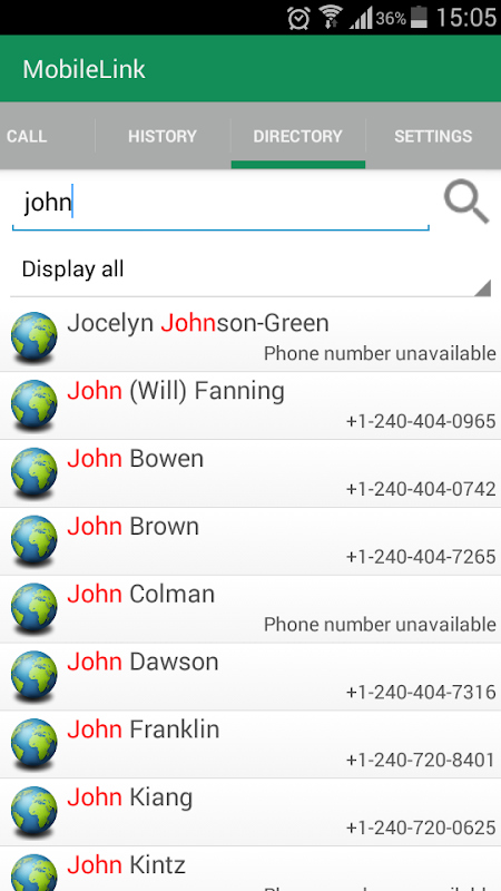 Dengan MobileLink, pengguna juga dapat mencari direktori perusahaan, klik-to-cepat dari kontak, dan mengelola pilihan, termasuk panggilan melalui (sambungan langsung tanpa kode pin atau panggilan dua tahap) memanggil dan memanggil kembali (memanggil panggilan dari sistem BroadWorks , menghindari biaya roaming.)