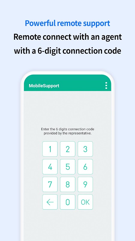 Terhubung itu mudah. Pelanggan hanya perlu memasukkan 6 digit kode koneksi yang diberikan oleh perwakilan dukungan.