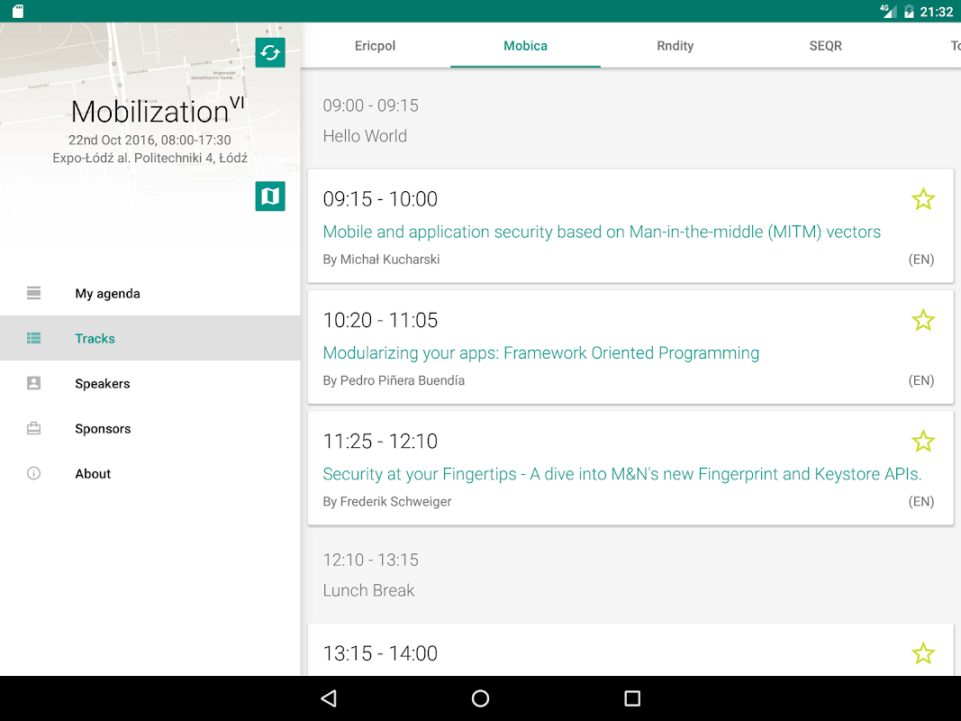 Mobile app for Mobilization 2016 conference: http://2016.mobilization.pl/