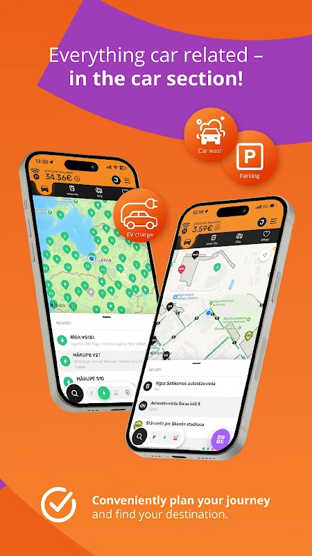 - Bayar untuk pengisian daya EV di seluruh Baltik dan di semua jaringan pengisian daya utama di Latvia;
