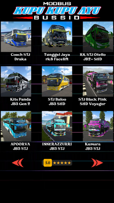 Aplikasi ini menyajikan koleksi mod bus kupu kupu ayu paling mutakhir yang dapat dimainkan dalam mod bus kupu kupu ayu jaguar. Anda akan menemukan beragam koleksi mod bussid bus kupu kupu ayu yang berbeda. Ada mod livery mod bus lengkap yang sedang populer, mod bus mod bussid truk oleng Ashok Leyland yang unik, mod mod bus simulator indonesia lengkap dengan desain keren, serta modifikasi lampu Bus Simulator Indonesia mod Full Light yang paling menarik.