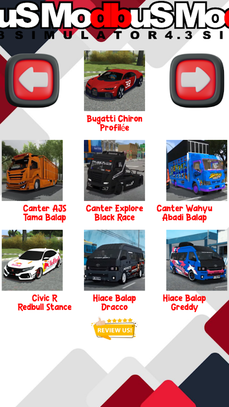 Pilih salah satu dari banyak konten yang tersedia, baik mod maupun skin livery.