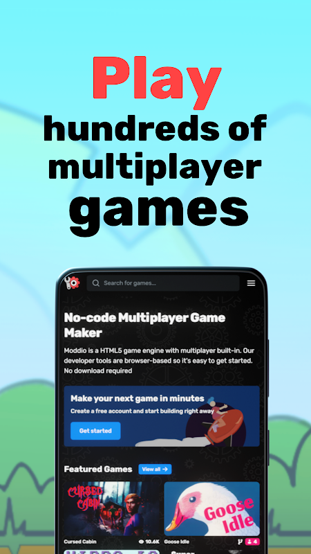 Moddio adalah tempat untuk bermain dan membuat game multipemain. Bergabunglah dengan ribuan pemain dan jelajahi dunia luar biasa yang dibuat oleh orang-orang di komunitas seperti Anda!