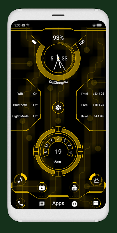 Personalisasi aplikasi Home screen Anda dengan mengklik panjang pada ikon. Pilih warna dari pemilih warna dan berikan UI berteknologi tinggi untuk warna khusus suasana hati Anda.