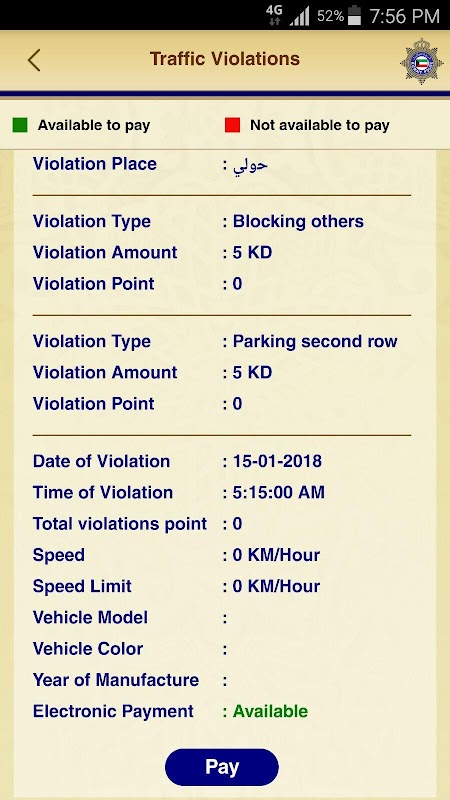 • Traffic violations inquiry