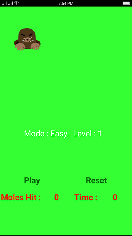 This Game Is Developed To Provide Fun And Enjoyment In Your Daily Life Out Of All The Tensions Of The World. In This Game A Mole Will Come Out From Anywhere In The Screen You Need To Hit The Mole To Gain Points. The More Moles You Hit The More You Get The Points. There Is A 60 Second Limit In Each Level. In That Time The Mole Will Move From Its Position To A New Position At A Particular Speed. There Are 3 MODES With 3 More Levels In Them.