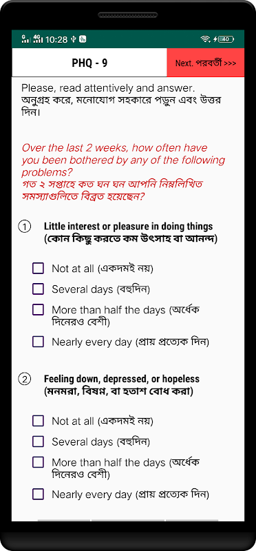 Aplikasi ini dikembangkan untuk proyek penelitian kami Mon Majhi (dalam bahasa Inggris, ini terkait erat dengan Mind Navigator) (https://sites.google.com/view/sabbir-eub/projects/mon-majhi). Melalui aplikasi ini, (dengan persetujuan Anda) kami akan mengumpulkan data tentang Anda (bukan nama, email, dll., tetapi data seperti usia, pendidikan), kesehatan mental Anda (berdasarkan skala ([1, 2])), dan perilaku penggunaan ponsel cerdas Anda. Namun, kami tidak akan memberikan saran apa pun terkait kesehatan mental Anda atau orang lain. Selain itu, kami tidak akan mengumpulkan data apa pun tanpa persetujuan Anda.