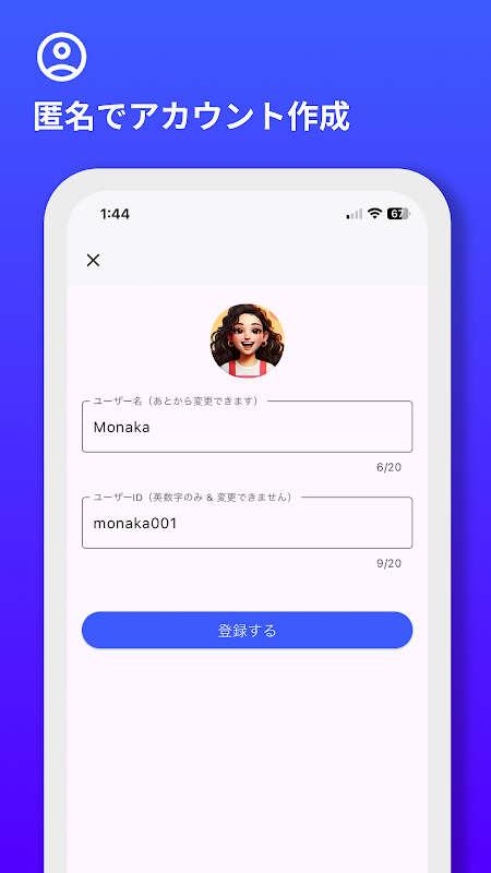 Anda dapat membuat akun secara anonim, sehingga Anda dapat menggunakannya tanpa mengkhawatirkan privasi Anda. Anda dapat mengubah ikon yang ditampilkan dan nama pengguna nanti. Kami menyediakan obrolan yang sangat anonim yang dapat Anda mulai dengan mudah.