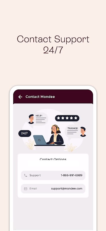 KONEKSI OMNI-SALURAN 24/7: Dukungan pelanggan Mondee yang luar biasa tersedia 24/7 dengan jangkauan melalui telepon, obrolan, dan email untuk wisatawan dan pakar.