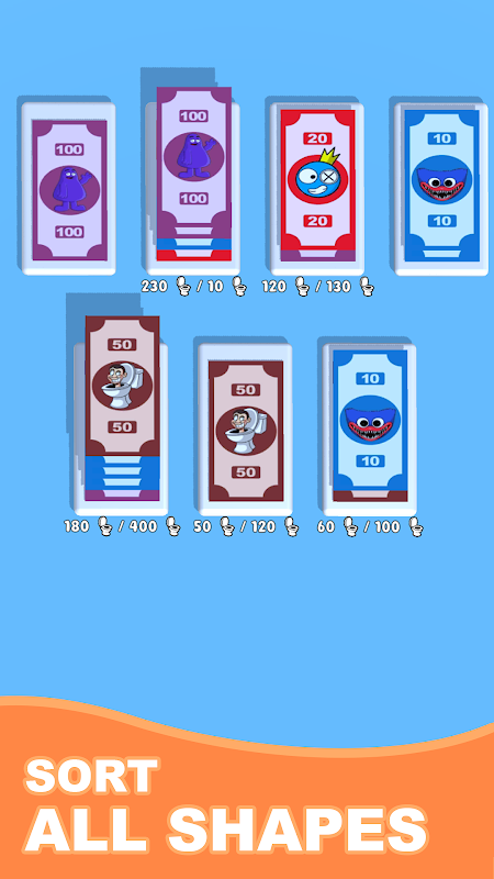 Money Stack Sort is a uniquely satisfying and mentally stimulating game that will captivate your attention. Your goal is to take a jumbled pile of identical currency notes and coins and skillfully arrange them into neat, ascending stacks. The challenge lies in your ability to make quick and accurate decisions to create perfectly organized stacks.