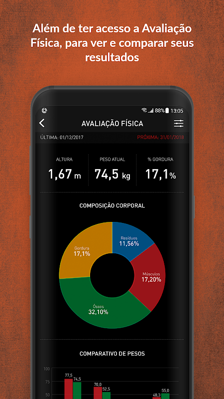 - Timeline para compartilhar suas conquistas (fotos, curtidas, comentários)