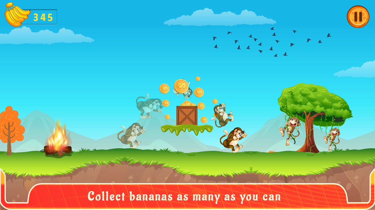 • Simple control just running and jumping monkey
