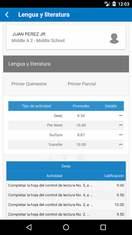 Tampilan catatan akademis.