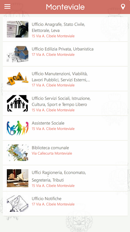 Selain mendapatkan informasi real-time, Anda dapat menentukan lokasi Anda pada peta dalam kaitannya dengan berbagai tempat menarik, seperti kantor kotamadya, dengan konsultasi kali membuka dan kehadiran personil (jam kantor) dan menghitung rute tercepat untuk mencapai mereka.