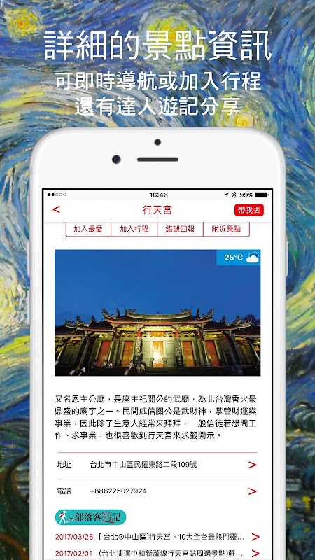 ●點選喜歡的景點可即時導航或加入行程,馬上排出最佳旅遊路線