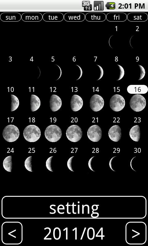 Ketika Anda mengklik widget untuk menampilkan bulan berjalan dari kalender fase bulan.