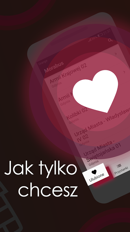 Aplikasi yang menunjukkan keberangkatan bus real-time di Trójmiasto, Polandia