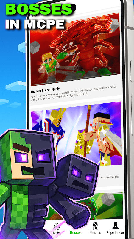 Mod Morph untuk Minecraft PE: All-in. Mod superhero, bos, mutan, dan tambahan mob.