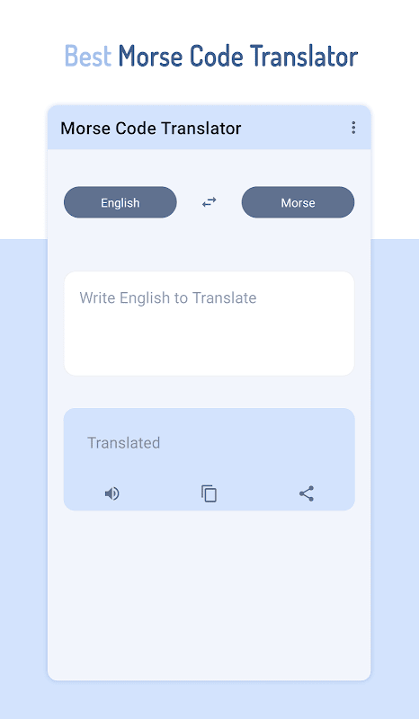 Aplikasi penerjemah morse memungkinkan Anda untuk langsung menerjemahkan teks Anda ke dalam kode morse, serta memecahkan kode kode morse dan mengubahnya menjadi teks biasa yang dapat dibaca.
