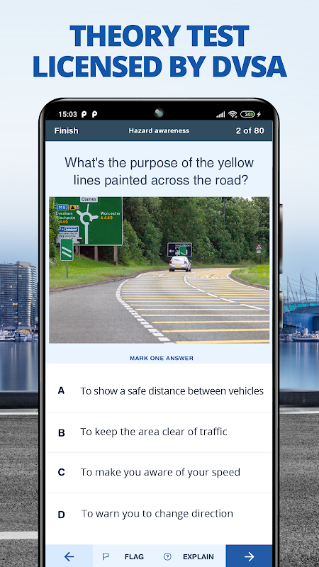 ✅ Revisi & Praktek Tes Teori Mengemudi: Uji pengetahuan Anda dengan mengikuti setiap tes teori tiruan CBT. Merevisi setiap pertanyaan, jawaban dan penjelasan, dilisensikan oleh DVSA (Badan Standar Pengemudi dan Kendaraan).