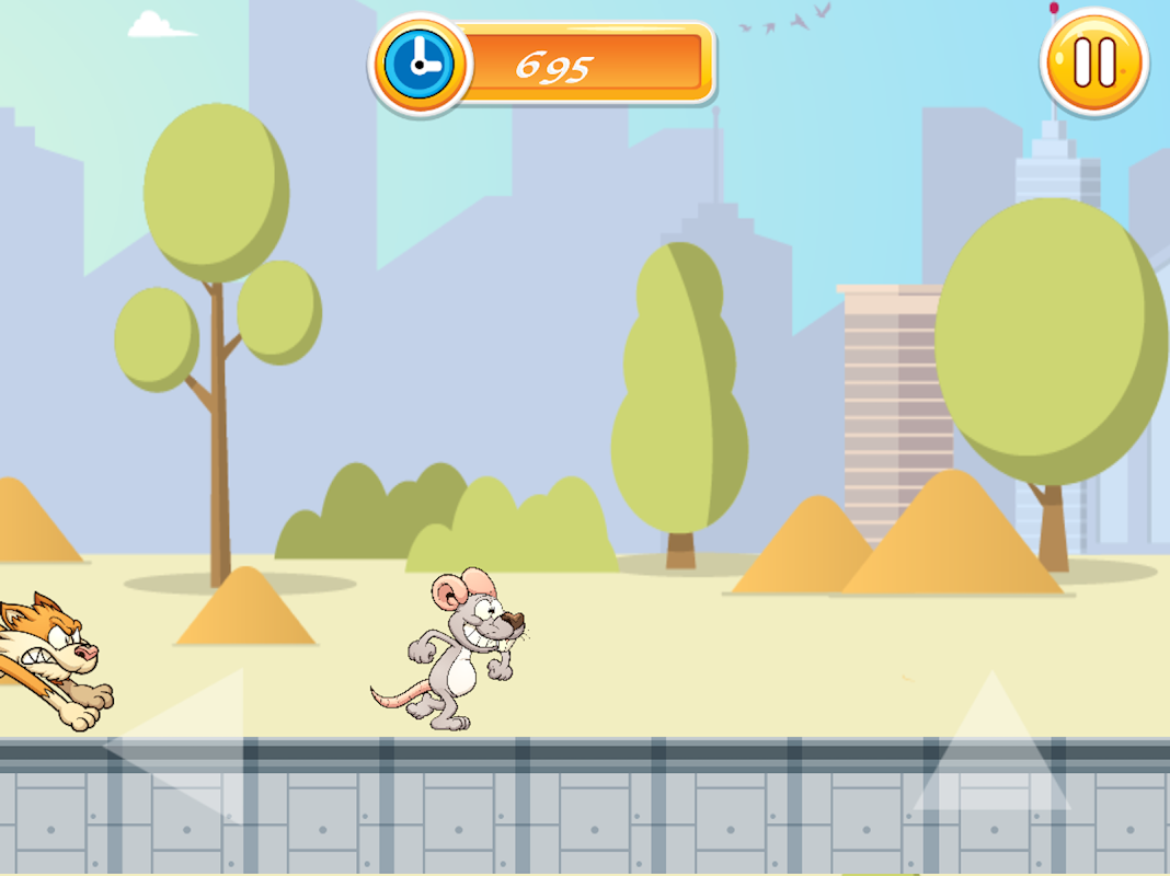 Mouse Hunt Game is a Runner Game in which There is a Cat and Old Lady Mainly. There are a lot of obstacles also. Mouse Have to avoid from being caught from the Cat and the Old Lady. The Old Lady Threw Shoes and Chappals on the mouse, we have to save mouse from hitting with any shoes. There are Fires as well which will Burn the Mouse So We have to Jump over the fire to avoid being burnt by fire.